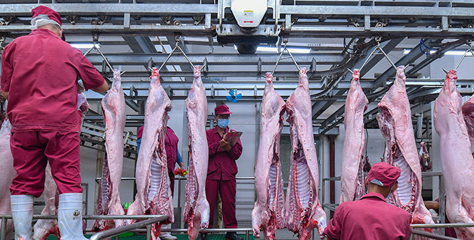 為保證生豬質(zhì)量,公司堅持從源頭抓起,同國內(nèi)多家大型牧業(yè)公司、生豬養(yǎng)殖合作社簽訂了長期戰(zhàn)略合作協(xié)議,生豬合同化供應率達到80%。